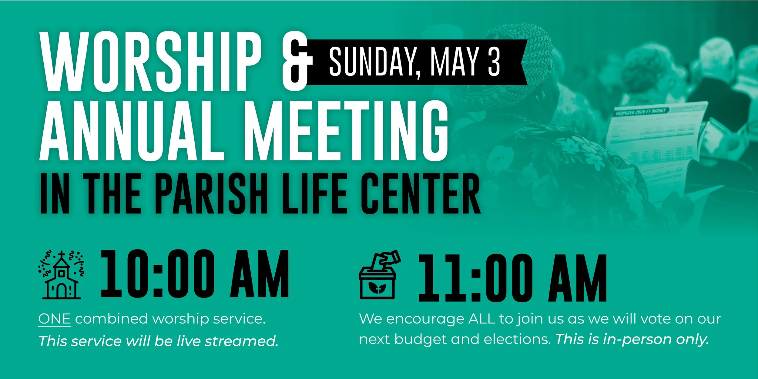 We encourage all to join us on Sunday, May 3 for one combined worship at 10:00am in the Parish Life Center followed by our Annual Meeting at 11:00am! The worship service will be live streamed, however the Annual Meeting is in-person only.